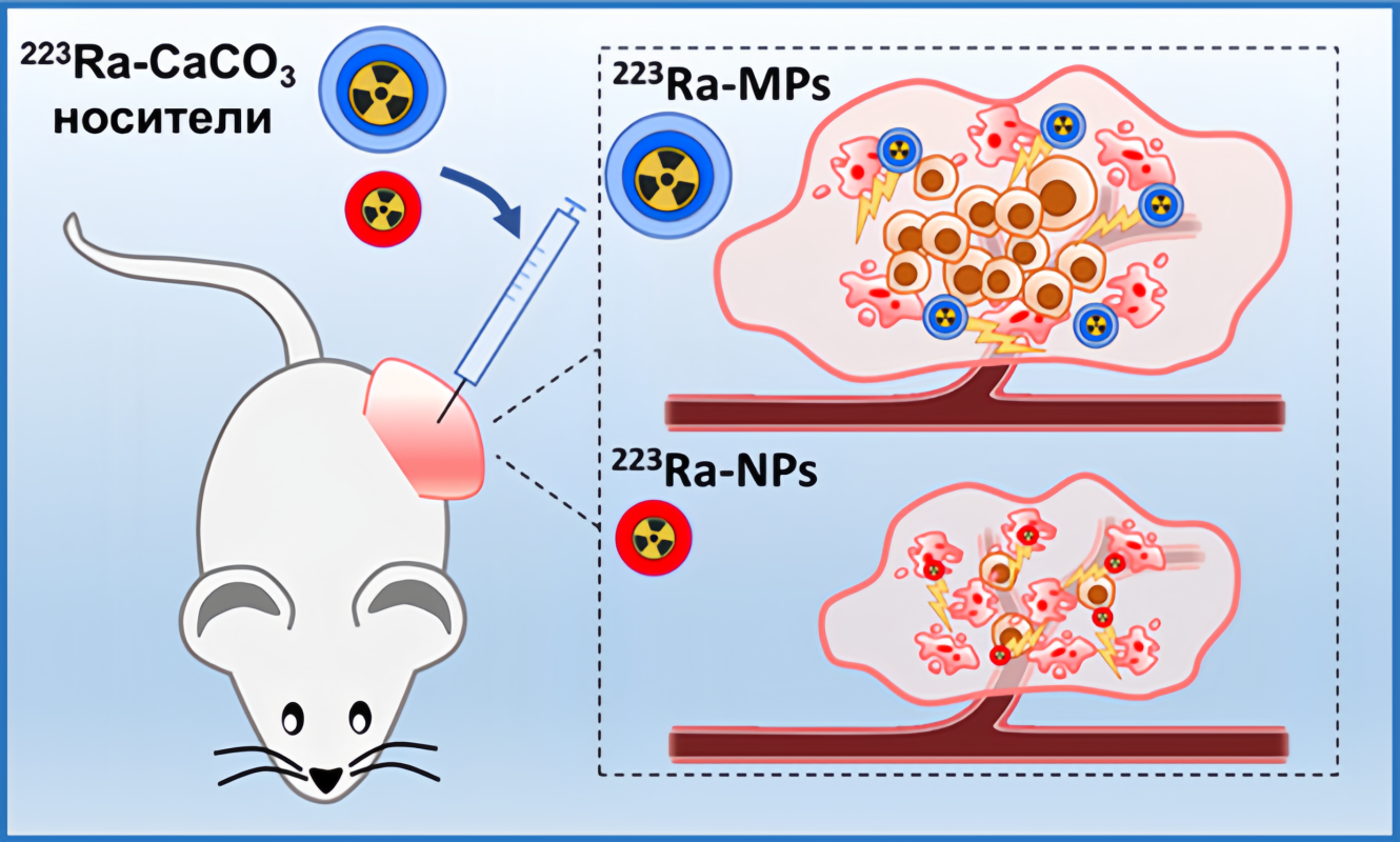 Мечение наноносителей радиоизотопом радия-223 и механизм противоопухолевой аткивности на мышинной модели. (https://doi.org/10.1039/D3BM01651J)
